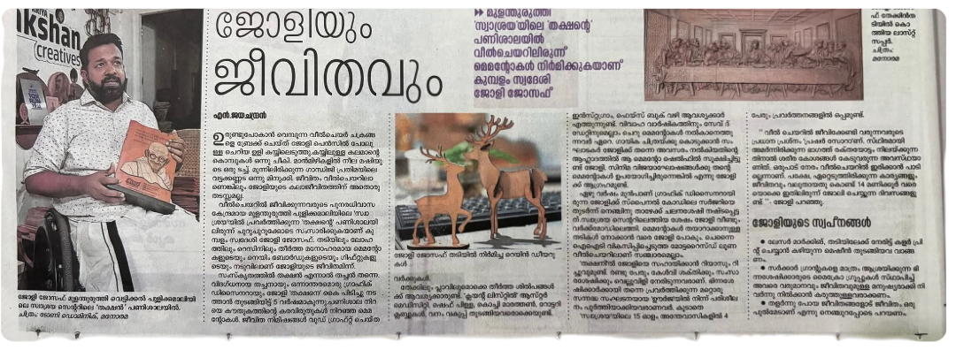 Jolly Joseph, a wheelchair user and inspiring woodcraft artist from Mulanthuruthy, Kerala, is transforming lives and…
